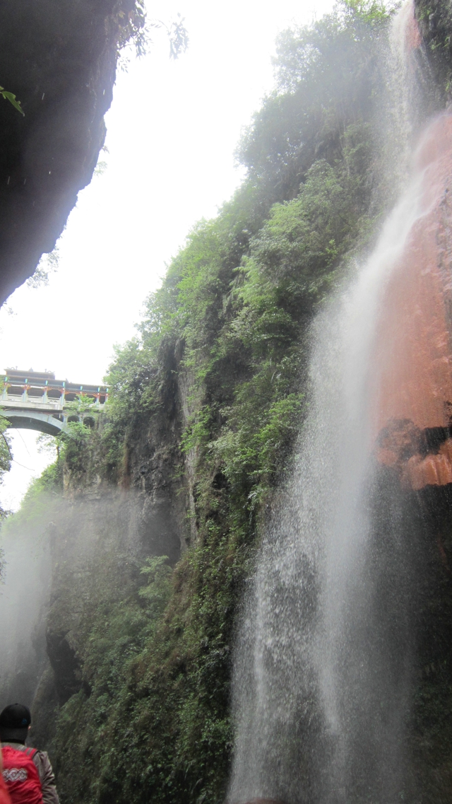 因为所住的城市是平原,只看到过小山,所以看到恩施的那些大山的时候,还是觉得很壮观的!到大峡谷已经是9点半,又下起了大雨,所以买了雨衣后就出发。第一站就体验到了在峡谷里穿行的快感,哈哈。照片若干: